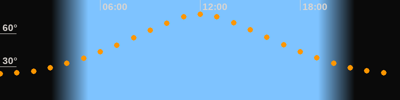 | Höchster Stand (Kulmination) | 12:01 Uhr (h = 77,4°) |