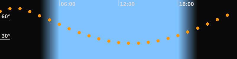 | Höchster Stand (Kulmination) | 01:28 Uhr (h = 77,4°) |