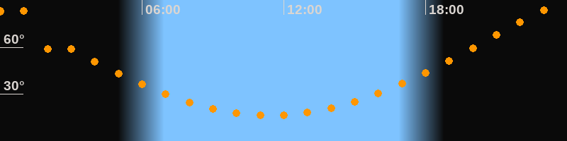 Höchster Stand (Kulmination)23:25 Uhr (h = 84,9°)