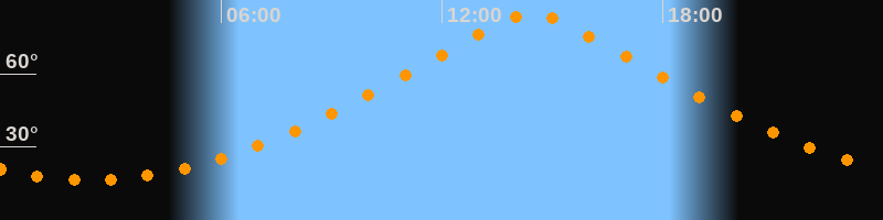 | Höchster Stand (Kulmination) | 14:27 Uhr (h = 84,9°) |