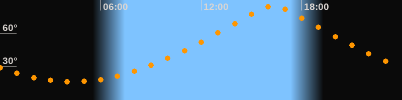 | Höchster Stand (Kulmination) | 16:18 Uhr (h = 84,9°) |