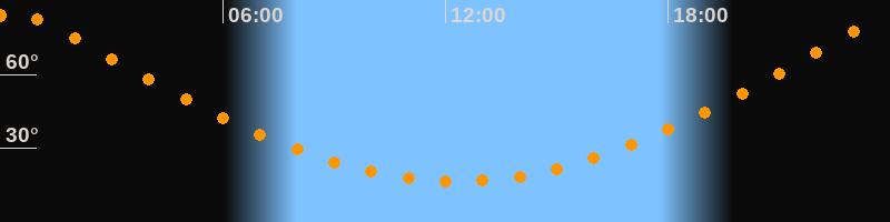 | Höchster Stand (Kulmination) | 00:18 Uhr (h = 84,9°) |
