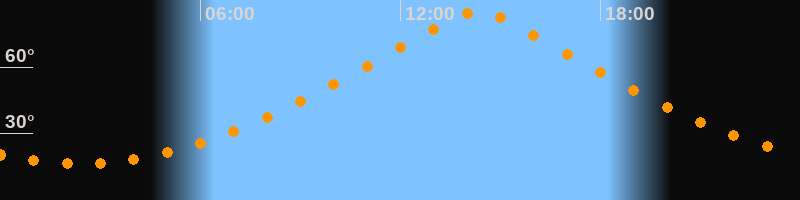| Höchster Stand (Kulmination) | 14:20 Uhr (h = 84,9°) |