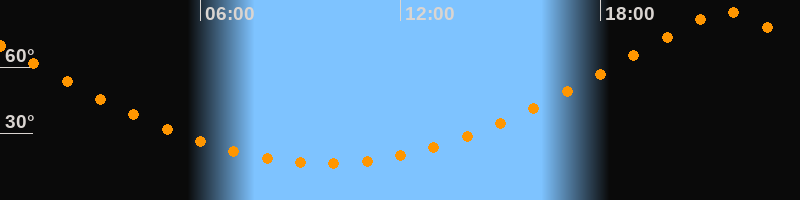 Höchster Stand (Kulmination)21:45 Uhr (h = 84,9°)