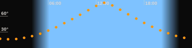 | Höchster Stand (Kulmination) | 13:03 Uhr (h = 84,9°) |