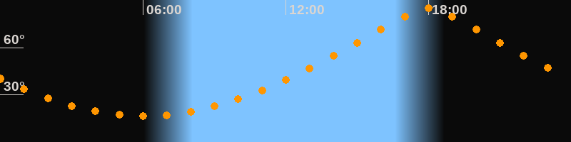 | Höchster Stand (Kulmination) | 18:01 Uhr (h = 84,9°) |