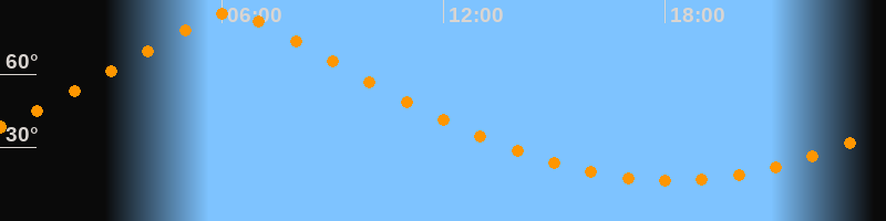 | Höchster Stand (Kulmination) | 06:14 Uhr (h = 84,9°) |