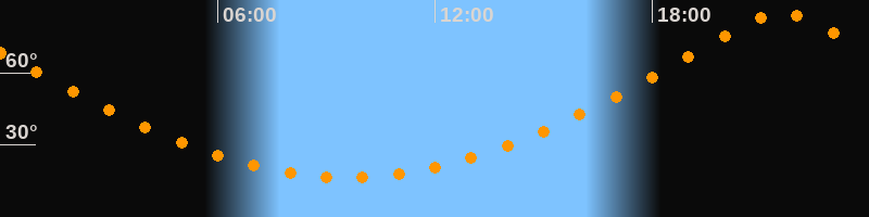 | Höchster Stand (Kulmination) | 21:35 Uhr (h = 84,9°) |