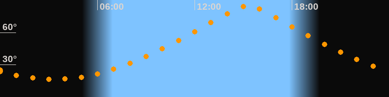| Höchster Stand (Kulmination) | 15:16 Uhr (h = 84,9°) |