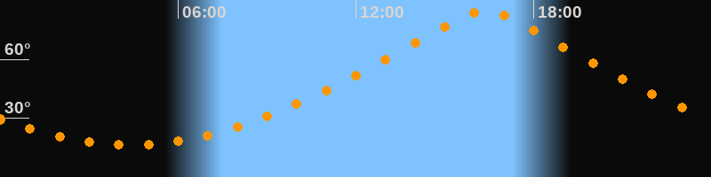| Höchster Stand (Kulmination) | 16:22 Uhr (h = 84,9°) |