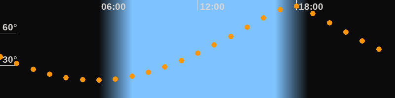 | Höchster Stand (Kulmination) | 17:44 Uhr (h = 84,9°) |