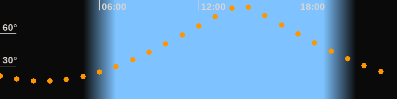 | Höchster Stand (Kulmination) | 14:33 Uhr (h = 84,9°) |