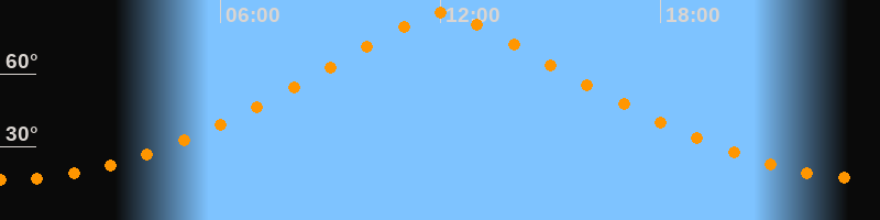 | Höchster Stand (Kulmination) | 12:03 Uhr (h = 84,9°) |