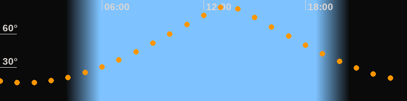 | Höchster Stand (Kulmination) | 13:23 Uhr (h = 84,9°) |