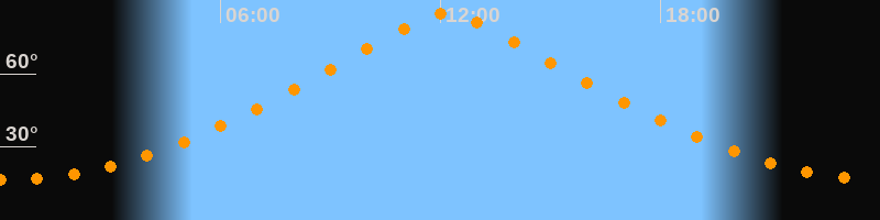 | Höchster Stand (Kulmination) | 12:10 Uhr (h = 84,9°) |