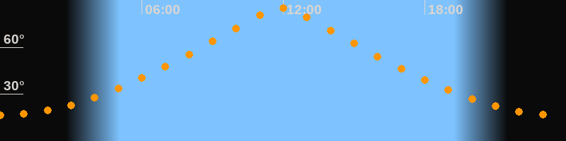 | Höchster Stand (Kulmination) | 11:54 Uhr (h = 84,9°) |
