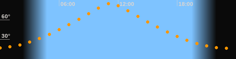 | Höchster Stand (Kulmination) | 11:15 Uhr (h = 84,9°) |
