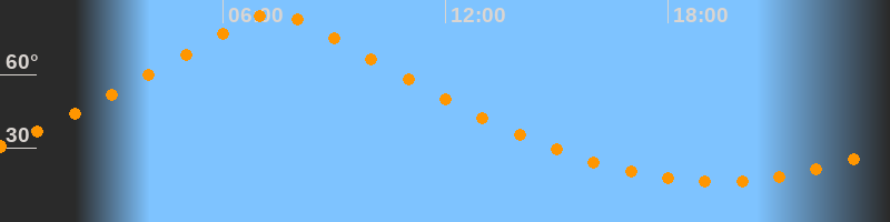 | Höchster Stand (Kulmination) | 07:23 Uhr (h = 84,9°) |