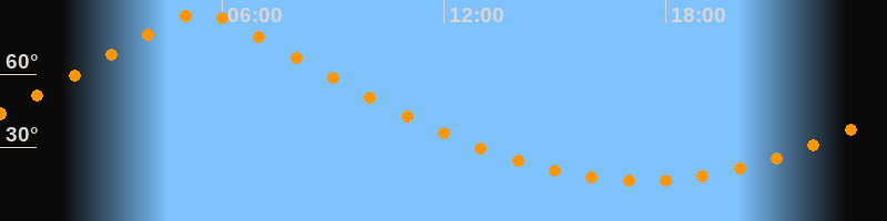 | Höchster Stand (Kulmination) | 05:25 Uhr (h = 84,9°) |