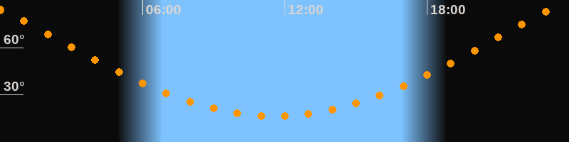 | Höchster Stand (Kulmination) | 23:35 Uhr (h = 84,9°) |