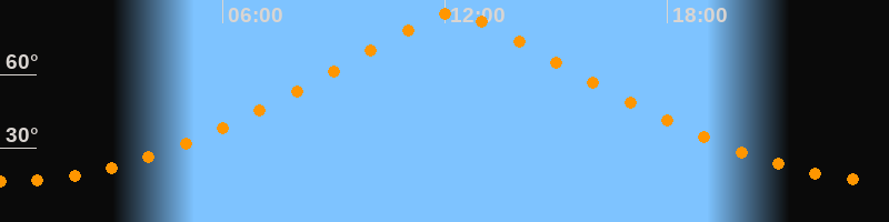 | Höchster Stand (Kulmination) | 12:12 Uhr (h = 84,9°) |