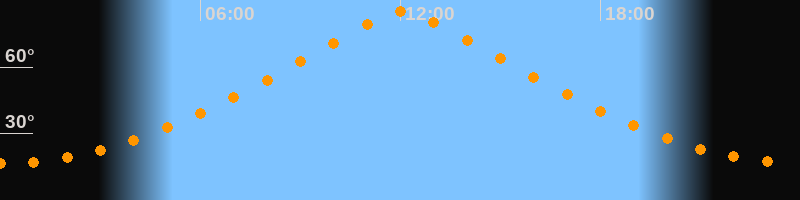 | Höchster Stand (Kulmination) | 12:04 Uhr (h = 84,9°) |