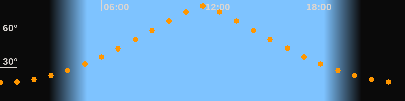 | Höchster Stand (Kulmination) | 12:00 Uhr (h = 84,9°) |