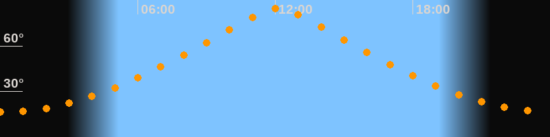 | Höchster Stand (Kulmination) | 12:05 Uhr (h = 84,9°) |