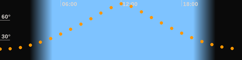 | Höchster Stand (Kulmination) | 12:06 Uhr (h = 84,9°) |
