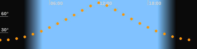 | Höchster Stand (Kulmination) | 12:02 Uhr (h = 84,9°) |