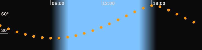 | Höchster Stand (Kulmination) | 18:13 Uhr (h = 80,1°) |