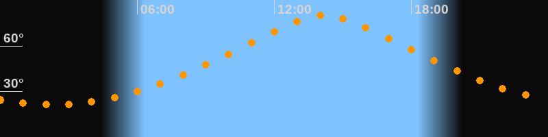 | Höchster Stand (Kulmination) | 14:11 Uhr (h = 80,1°) |
