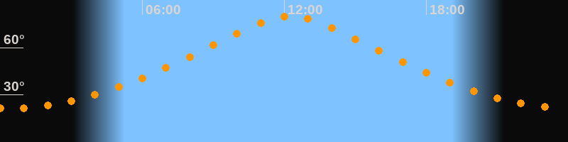 | Höchster Stand (Kulmination) | 12:15 Uhr (h = 80,1°) |