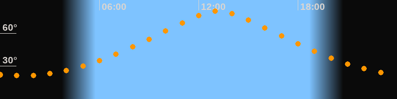 | Höchster Stand (Kulmination) | 13:11 Uhr (h = 80,1°) |