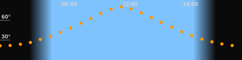 | Höchster Stand (Kulmination) | 12:04 Uhr (h = 80,1°) |