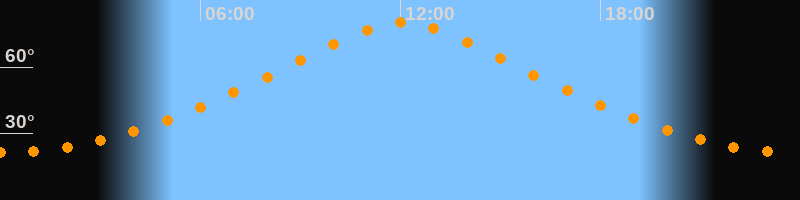 | Höchster Stand (Kulmination) | 12:03 Uhr (h = 80,1°) |