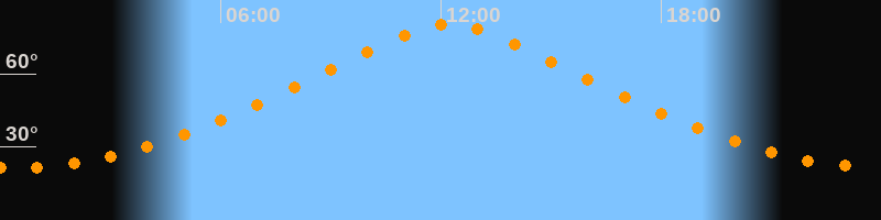 | Höchster Stand (Kulmination) | 12:13 Uhr (h = 80,1°) |