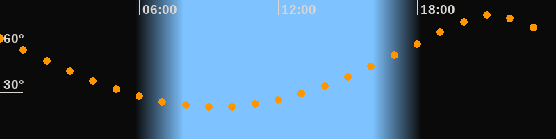 | Höchster Stand (Kulmination) | 21:13 Uhr (h = 80,6°) |