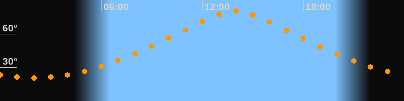 | Höchster Stand (Kulmination) | 13:58 Uhr (h = 80,6°) |