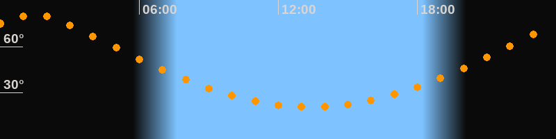 | Höchster Stand (Kulmination) | 01:23 Uhr (h = 80,6°) |