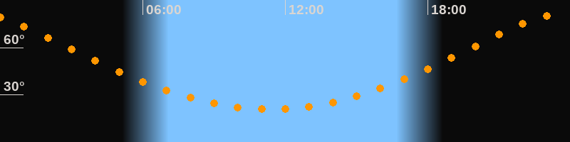 | Höchster Stand (Kulmination) | 23:20 Uhr (h = 80,6°) |