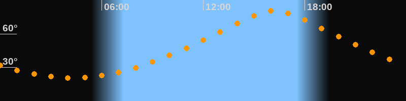 | Höchster Stand (Kulmination) | 16:12 Uhr (h = 80,6°) |