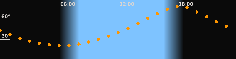 | Höchster Stand (Kulmination) | 18:11 Uhr (h = 80,6°) |