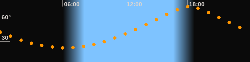| Höchster Stand (Kulmination) | 18:12 Uhr (h = 80,6°) |