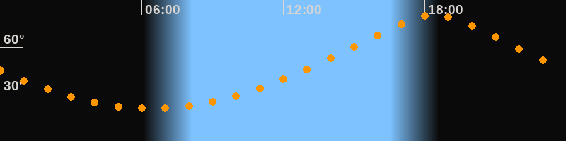 | Höchster Stand (Kulmination) | 18:25 Uhr (h = 80,6°) |