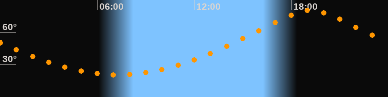 | Höchster Stand (Kulmination) | 19:13 Uhr (h = 80,6°) |
