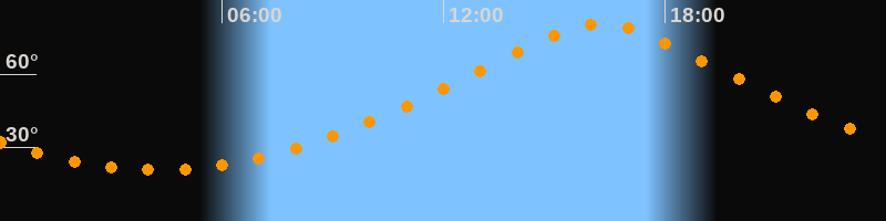 | Höchster Stand (Kulmination) | 16:16 Uhr (h = 80,6°) |