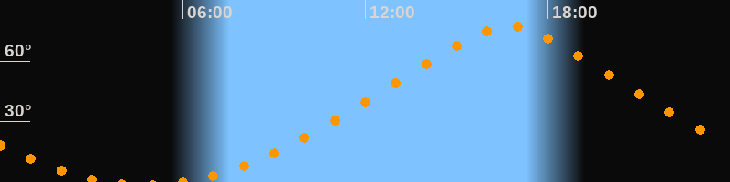 Höchster Stand (Kulmination)16:44 Uhr (h = 77,1°)