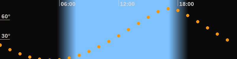 Höchster Stand (Kulmination)17:08 Uhr (h = 77,1°)