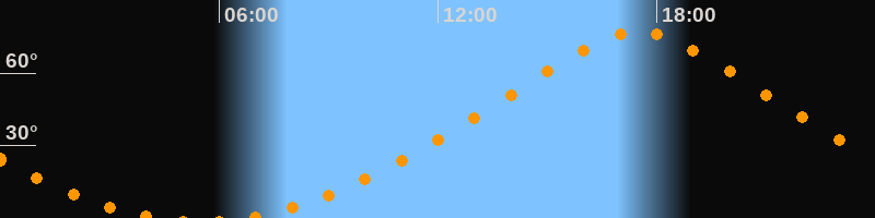 Höchster Stand (Kulmination)17:30 Uhr (h = 77,1°)